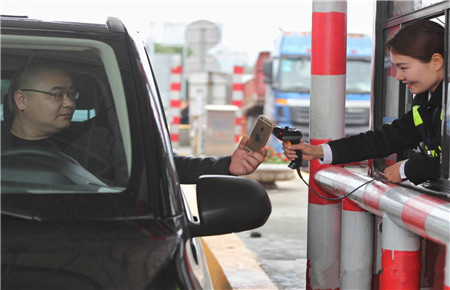 “移動支付也給我們工作帶來很多方便,省了核對現金數額、辨別錢幣真偽、找零的工作量,操作時間縮短,車輛通行速度自然也快了很多。”當班收費班長馬德偵介紹,而且付費掃碼器的有效距離能夠達到1.5米,司乘人員坐在車內就能輕松完成掃碼支付,既方便又快捷。“對于較大的貨車,我們也可以使用手動掃描儀進行操作。”