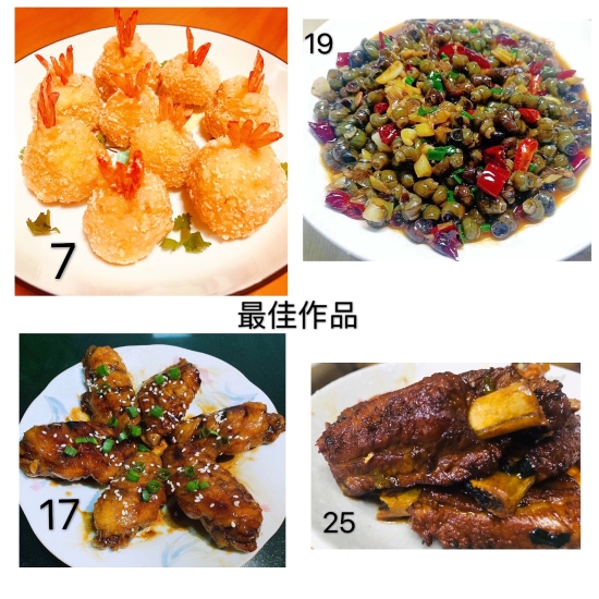 圖為評委團評選 本次活動共32幅作品進行參評,最終評選出朱英英的《鳳尾蝦球》、謝海云的《饞嘴螺絲》、李菊麗的《昂翔展翅》、陳瑩的《骨色骨香》為“最佳作品”,朱英英的《孔雀開屏》、葉懿慧的《向陽花》、吳琴琴的《秋收》為“最有創意作品”。大家紛紛相約疫情過后,以廚會友、以食為樂,來一場百家宴一飽口福。 陳瑩