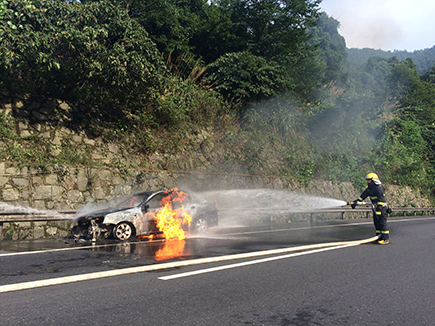 7月14日下午4點18分,一輛轎車在塘嶺隧道寧向出口一百米處自燃起火。轎車被燒成空殼,所幸火災沒有造成人員傷亡。