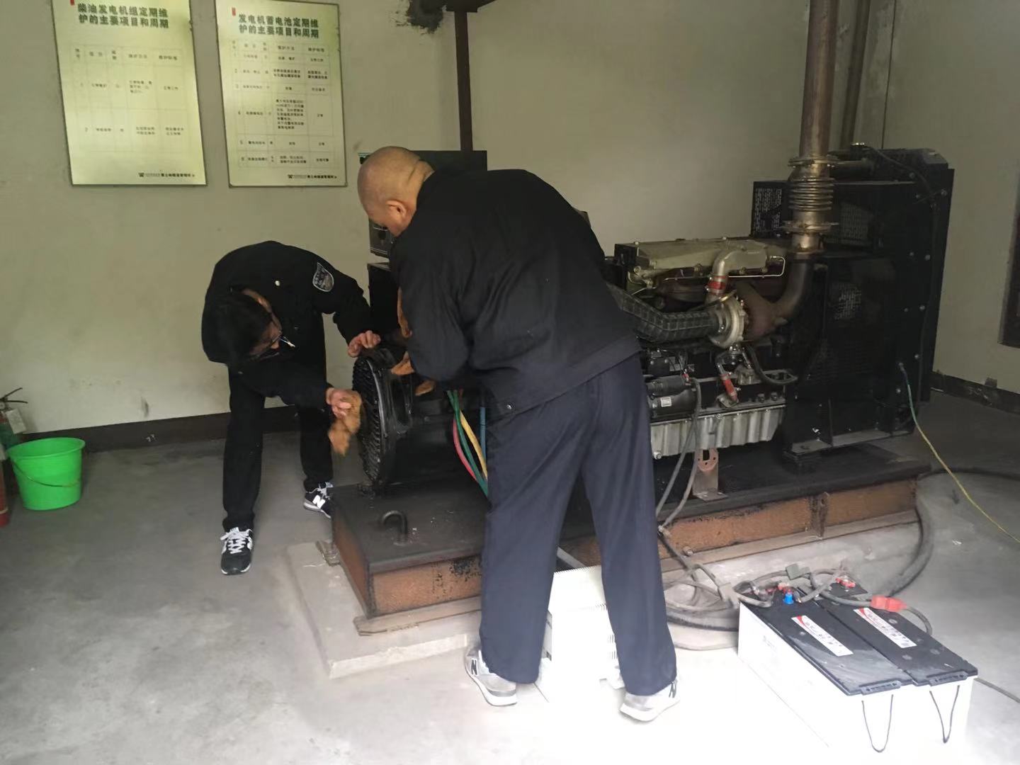 (圖為工作人員擦拭發電機)