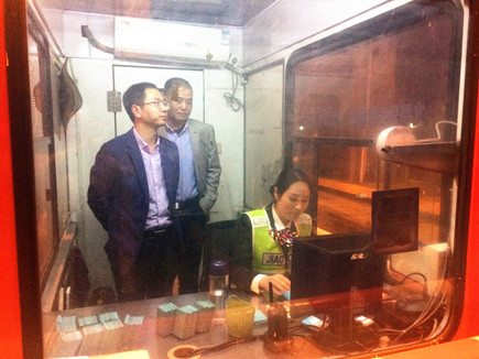 公司副總經理董阿林夜訪收費所 4月11日晚上,公司副總經理董阿林來到沿線四個收費所了解現場收費工作。征費部相關人員陪同檢查。
