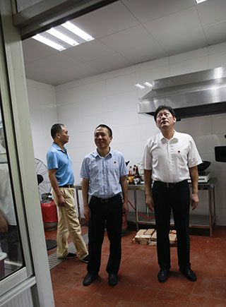 圖為公司副董事長、總經理張建平檢查收費所食堂 “今天車流量多嗎?你們是公司形象的代表,請把最優質的服務提供給他們?!痹谂_州收費所一號崗亭里,張建平一邊慰問當班收費員,囑咐他們注意安全和休息,一邊鼓勵他們堅持做好文明服務。他還到黃土嶺隧道所、臨海南收費所慰問當班執勤隊員和收費員。此時,各所食堂管理房正處于改造階段,他仔細查看了各所食堂和工作場所,了解大家的飲食和工作環境。