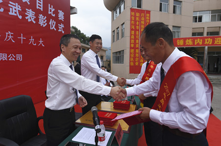 圖為集團領導與獲獎人員握手