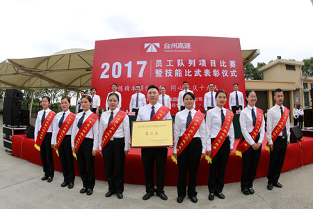 “立正、向后轉、齊步走、正步走……”10月19日下午,臺州收費所管理房廣場上,伴隨著一聲聲嘹亮的口號,傳來一陣陣整齊有力的步伐聲。6支收費所、隧道所代表隊,正在場上進行緊張的隊列比賽。最后經過激烈角逐,溫嶺西收費所代表隊獲得了隊列項目的第一名。隨后,集團舉行了以“煉精本領保暢通、同心共慶十九大”為主題的員工技能比武總結表彰儀式,對在技能比武獲獎的員工和集體進行了隆重表彰!