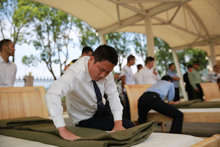 圖為疊被子比賽