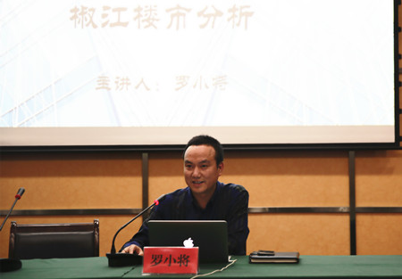 圖為集團黨委委員、副總經理羅小將分析椒江2017年樓市情況