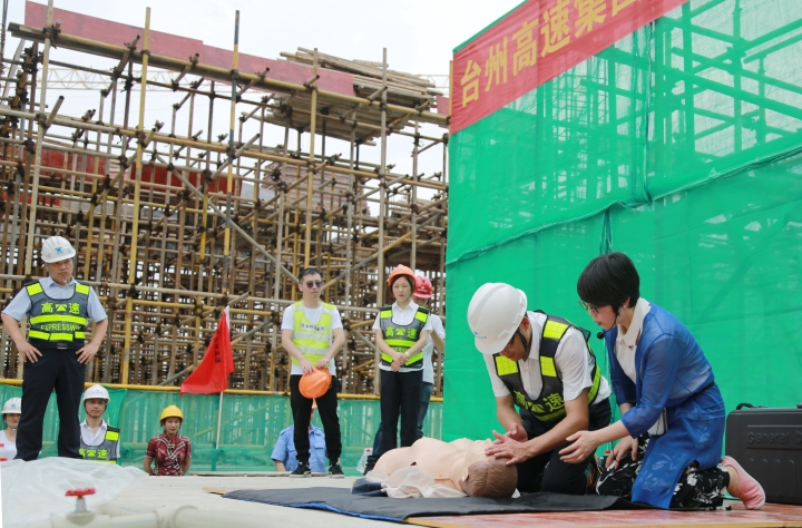 圖為心肺復蘇急救演練 隨后,臺州職業技術學院副教授李美芬到場為大家開展心肺復蘇急救知識培訓。李美芬在現場結合模型詳細為大家講解心肺復蘇急救時的注意事項、操作方法、步驟流程等,并作了專業的示范?,F場人員踴躍上臺實踐學習,李美芬一一在旁邊作技術指導,強化了大家的學習效果。 整個演練過程有條不紊,集團各部門協作配合有力、扎實有序,現場人員反應迅速,現場指揮和演練人員配合默契,全方位展現了臺州高速集團應急搶險能力和各部門嚴謹細致的工作作風。本次演練為“安全生產月”活動的一部分,臺州高速集團將以此為契機,深化安全教育培訓,狠抓安全措施落實,確保公司安全基礎不斷穩固。