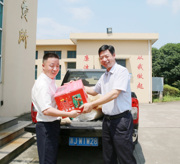圖為走訪慰問匯通養護公司 “高溫酷暑,大家辛苦啦!高溫工作一定要注意自身身體,避免中暑?!庇杉瘓F黨委書記、董事長、總經理陳文波,副總經理章海峰帶隊,分別對臺州高速交警支隊、臺州高速路政大隊、臺州收費所、施救中心、維養中心、監控中心、黃土嶺隧道所、臨海南收費所、匯通養護公司等地進行走訪慰問。