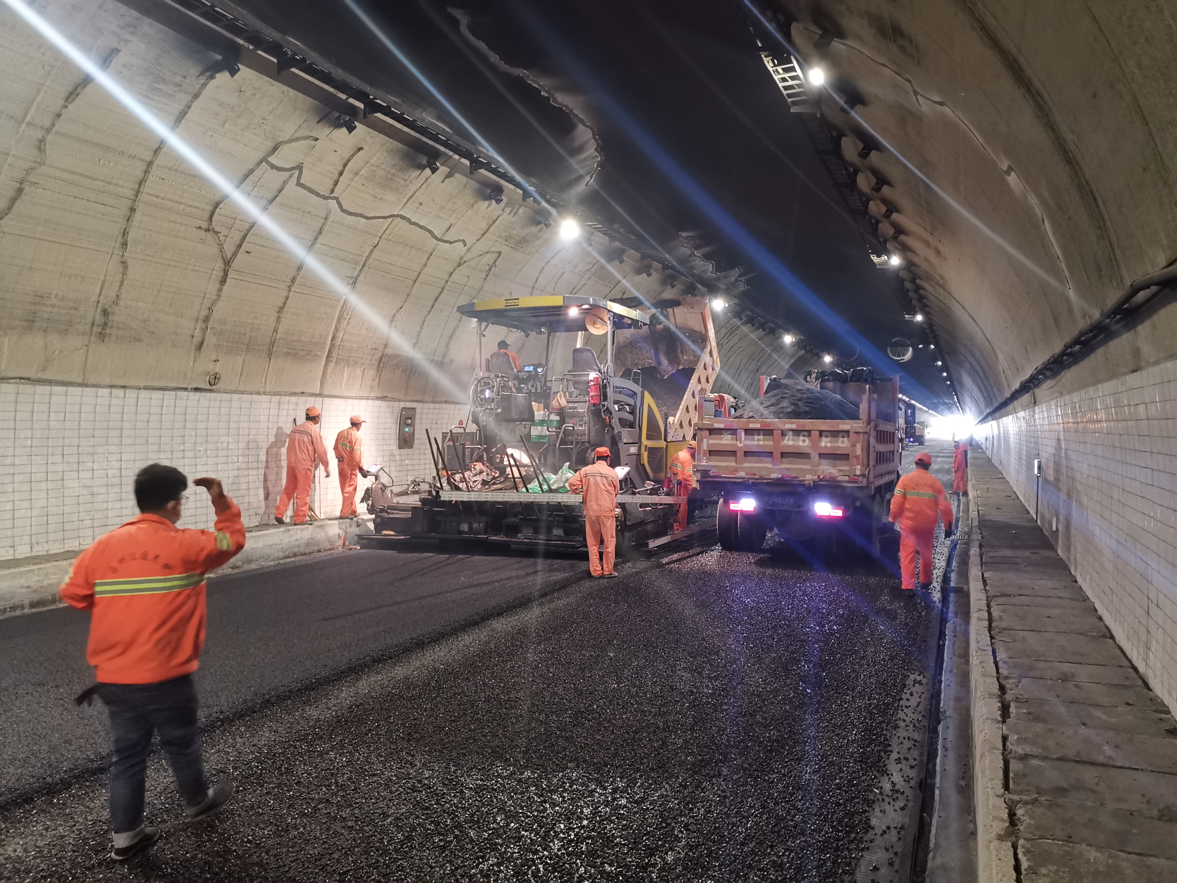 圖為施工現場 10月29日凌晨,隧道施工正式拉開序幕,5個作業班組全部進場,作業人員佩戴安全帽、系上安全繩、身著反光背心,嚴格按照操作規范和施工工藝,堅守在各自崗位上,隧道內一派忙碌,多個工作面同時開展?,F場監理、封道單位、工程部人員各守其職,嚴格把控施工質量與安全管理,確保安全質量零漏洞。 為確保項目順利實施,臺州高速集團要求施工單位最大限度調派人員,倒排工期、周密安排、科學組織,施工以24小時超常規進行。施工期,集團董事長陳文波,總工程師江輝,交警路政等領導多次到施工現場指導工作,抓質量、抓進度、抓安全。各部門積極配合做好封道分流及宣傳、安全檢查和后勤保障工作。工程部人員放棄雙休及夜間休息時間,安排人員輪流值班,顛倒時差現場全方位監工。一旦發現問題及時與各方溝通聯系,協商共進,解決難題。