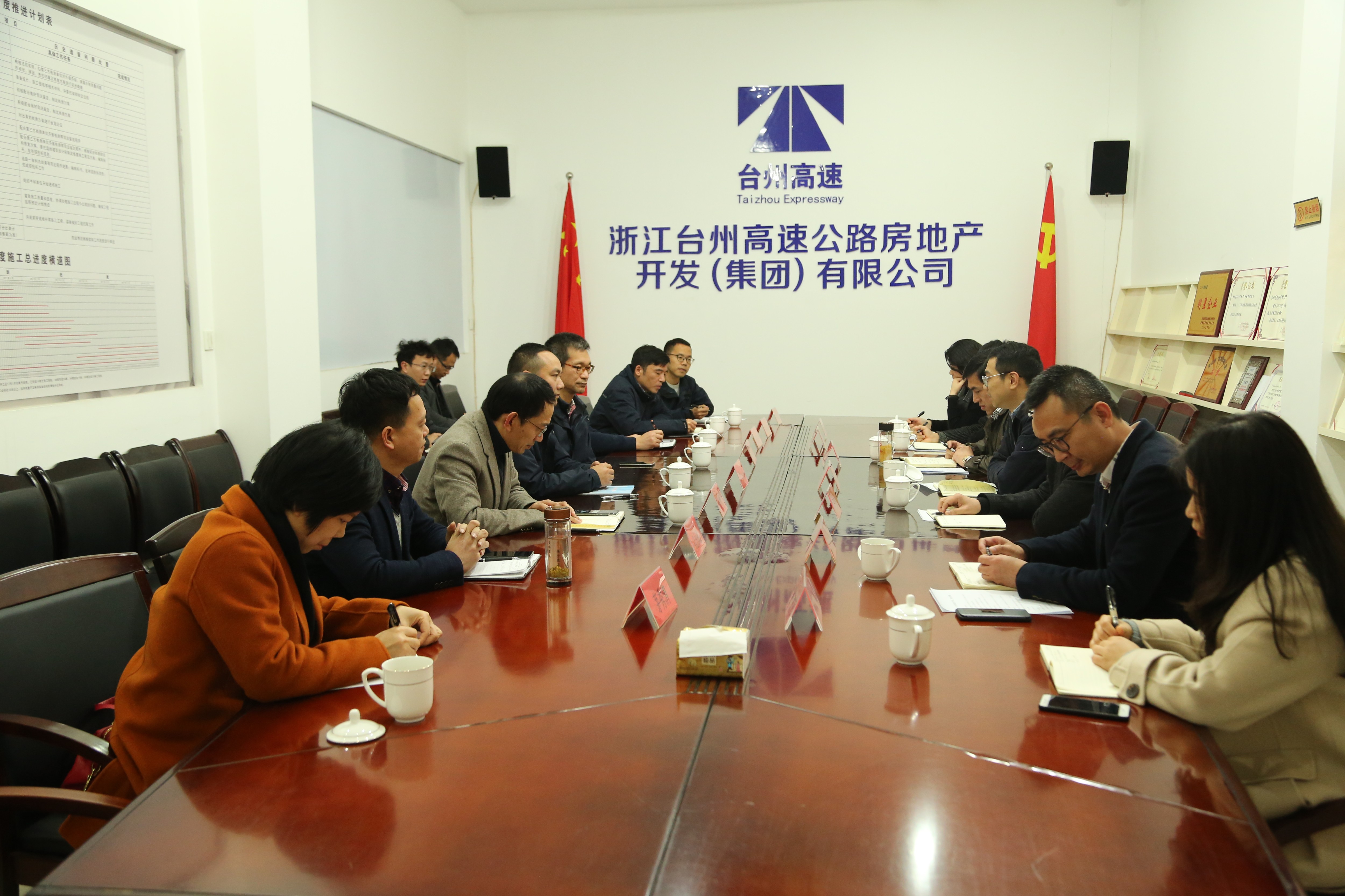 3月2日下午,臺州市椒江城市發展投資集團有限公司董事長洪杰帶領臺州市椒江城建置業有限公司骨干,到浙江臺州高速公路房地產開發有限公司交流學習。臺州高速集團黨委委員、副總經理羅小將以及高速房產集團領導班子熱情接待了來訪的一行。