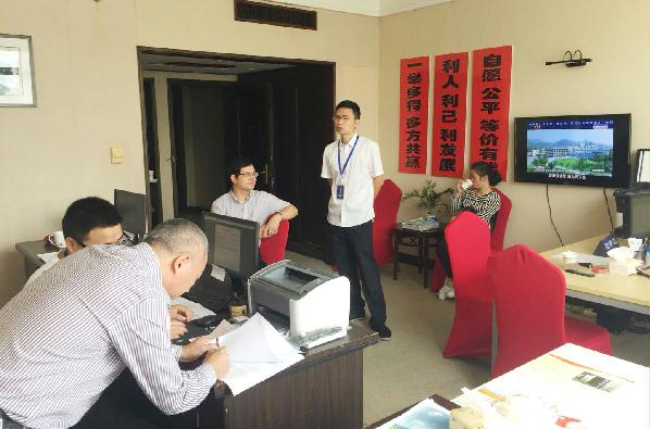 圖為臺州市政府副秘書長蘇元蓬走訪三門股權收購點 蘇元蓬一邊喝著茶水,一邊和大家拉起了家常。他是三門人,趁著國慶中秋假期回家探望親人,就來三門收購點走走,看望一下大家。 蘇元蓬回顧了市政府與集團公司此次股權收購的前期準備與工作動員,并詳細詢問了公司目前的收購情況和三門點的收購進度。工作人員介紹由于前期三門縣政府高度重視此次收購工作,特別是三門縣委常委、常務副縣長葉邦漢牽頭,召集全縣各機關單位、鄉鎮街道召開高速股權收購動員會。在收購過程中,三門電視臺、三門報等媒體宣傳到位,各相關單位全力配合,縣里老領導帶頭轉讓,三門股權收購工作進展順利。 “三門縣城里,你們有沒有做廣告宣傳?股東們是不是都知道了?”蘇元蓬問道?!坝械模械?,這是我們公司準備的公告海報?!惫ぷ魅藛T林玲遞過一份海報?!拔覀兇蛩愎澓髲堎N。”當得知三門收購點在對前來辦理轉讓的股東隨訪和電話問詢中,已確認大多數股東都已知曉股權收購這個消息后,蘇元蓬大加贊賞。 蘇元蓬強調,要強調此次股權收購對于企業轉型升級的重要意義,現場工作人員要耐心解釋,深入宣傳,特別是那些已經辦理轉讓的股東,由他們口口相傳會更有說服力。對于國企法人股東,一定要借助政府的力量,由臺州市國資委與當地國資局共同推動,促成國企法人盡快轉讓,早日完成股權收購任務。 邵全森
