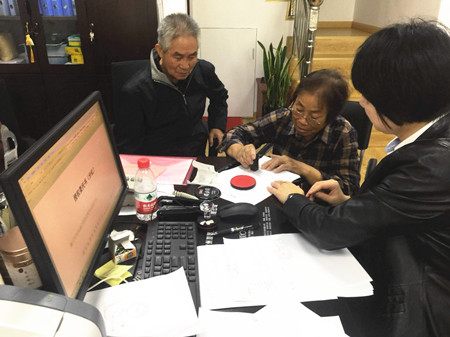 圖為椒江收購點現場 不巧的是,剛好收購點的股東特別多,輪到老兩口辦理得等待些時間,正好他們可以坐著仔細看看收購點的各類宣傳資料,等待中友好而耐心。 當問及王阿姨是哪年購買臺州高速股權的,她邊說邊小心地拿出一張一張發黃的原始資料,“可早啦,94年買的呢,估計你那時都還沒上學呢?!痹瓉硭翘媾_州市椒江星明實業總公司辦理法人股轉讓的。作為工作多年的財務人員,她對待每個辦理環節都甚是仔細。架著一副老花眼鏡的她,坐在工作人員的身旁,耐心地問清轉讓疑問,逐字地看著股權轉讓協議書,認真地填好股權轉讓款單,不管是簽字還是蓋章都不慌不忙。 “年輕人,你們可也得把資料看看仔細,如果出差錯讓我再來,那可得你們準備好出場費請我來哦?!蓖醢⒁涕_著玩笑對工作人員說道。 陳林偉