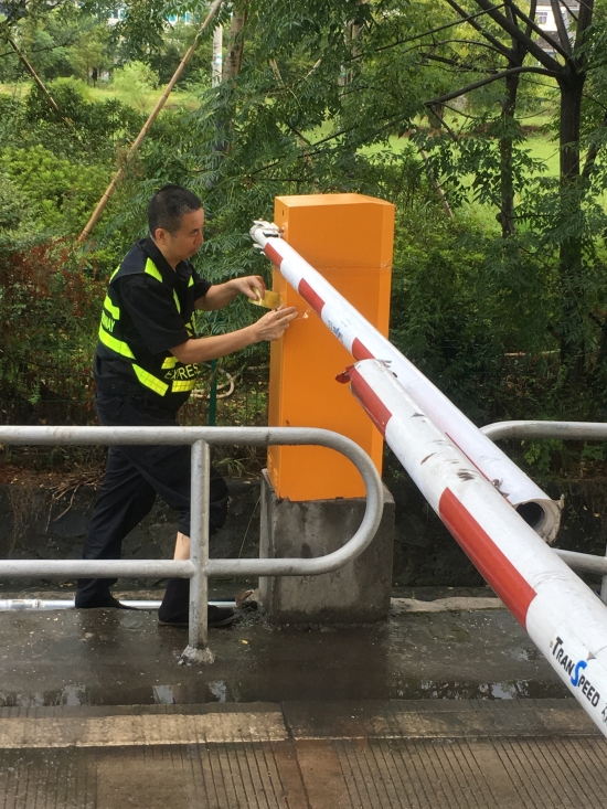 圖為工作人員在對欄桿機作防水處理 加強應急值守確保信息暢通。在防臺期間,中心實行常規值班和應急值班雙值班制,嚴格落實24小時應急制度。要求全體人員密切關注與“利奇馬”有關的信息,隨時掌握臺風動態和道路狀況,加強與收費站、隧道所的溝通協作,實現信息及時共享,一旦出現緊急情況,要迅速啟動應急預案,有條不紊開展應急處置工作,確保高速公路安全暢通,最大限度避免和減少人員財產損失。 項寅曉