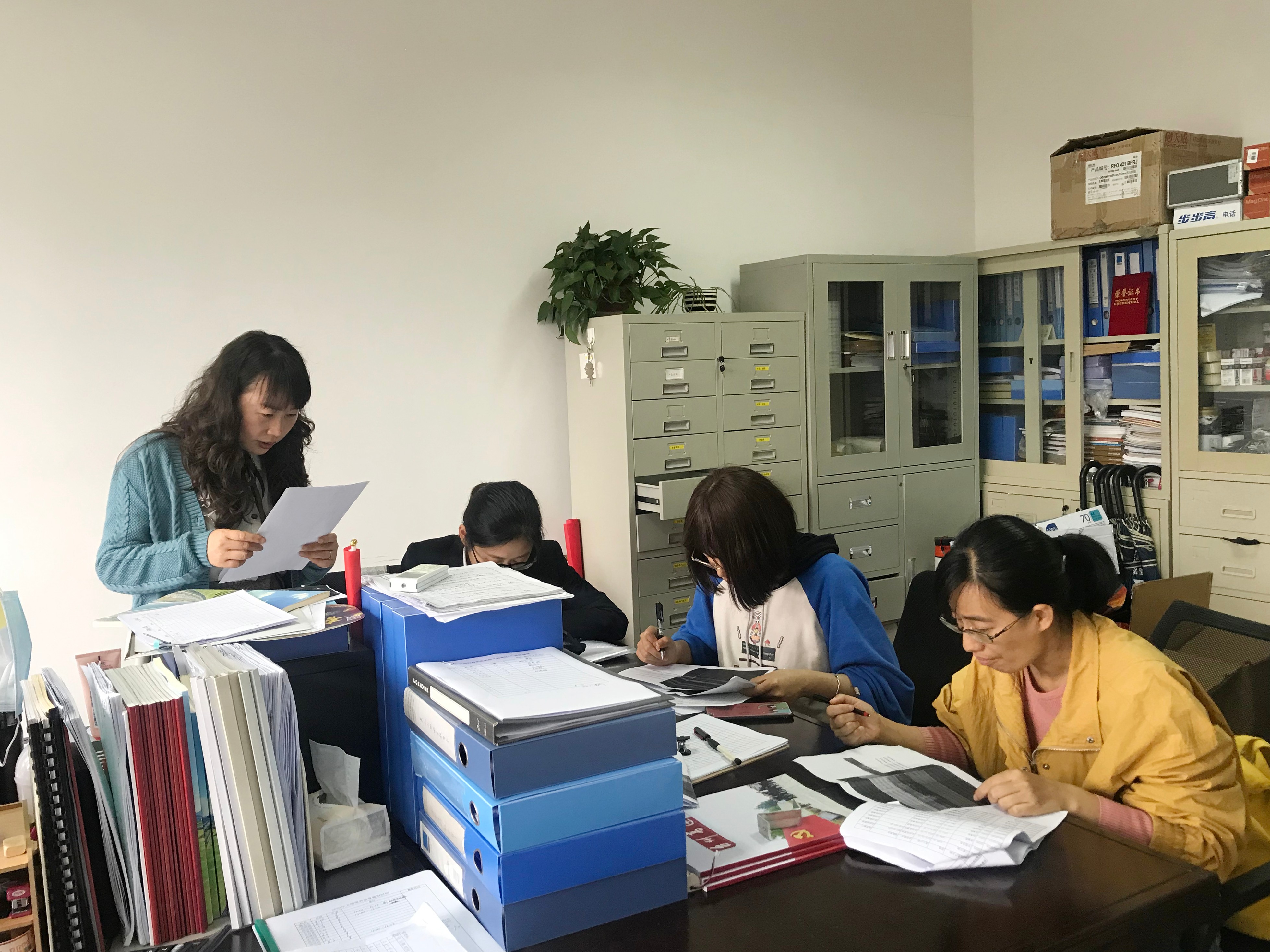 圖為臺賬資料核對現場 資產大盤點半年度開展一次,主要是對電腦、空調、機械設備等固定資產進行實地核對,確保公司實物資產的安全與完整,以及提高資產使用效率。