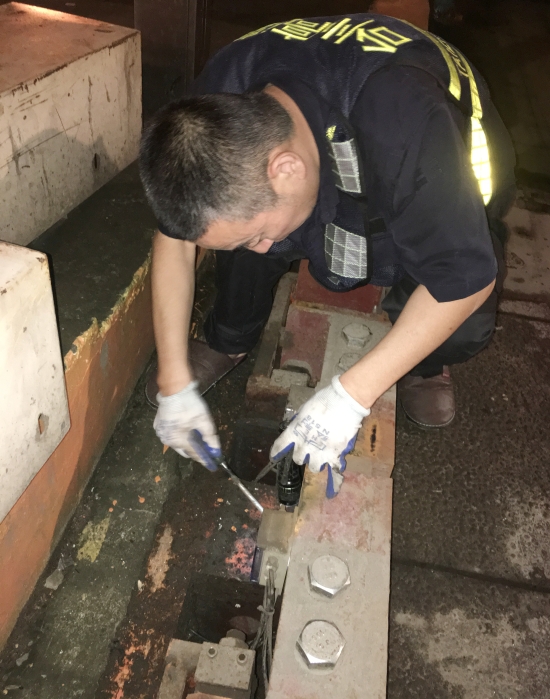 圖為張鵬在搶修計重稱臺