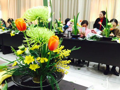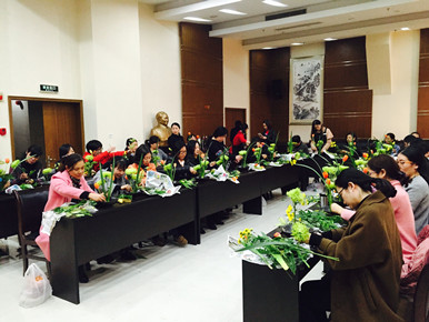 3月8日下午,公司47名女員工歡聚一堂,開展了一次具有古樸風韻的插花活動?;顒友埩酥袊寤ɑㄋ噮f會理事、臺州市花藝文化研究會會長蘇群老師作指導。