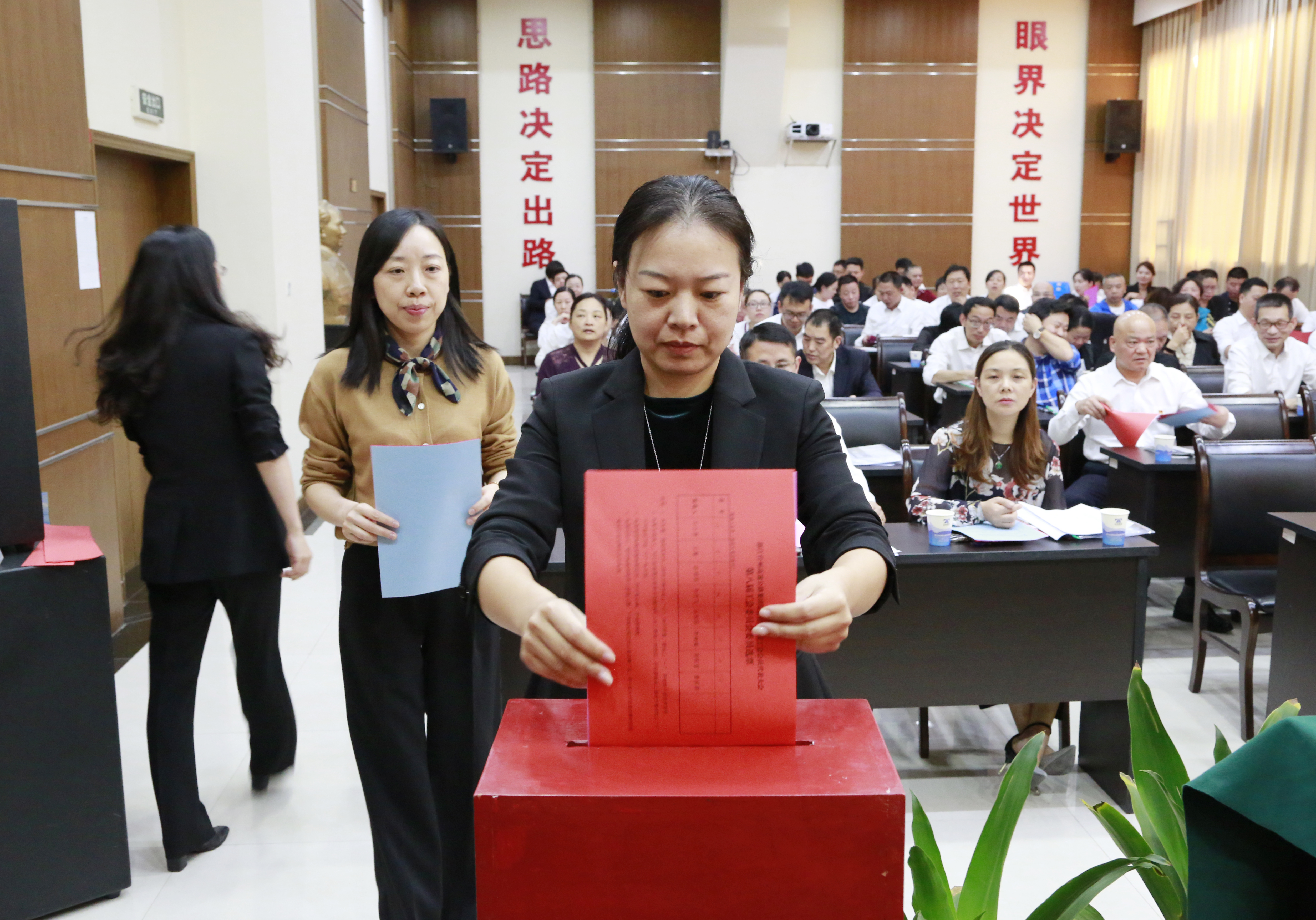 圖為曾莉莉作工作報告 隨后,臺州高速集團召開第七屆女職工代表大會,選舉產生新一屆女職工委員會委員,曾莉莉當選為女工委主任。