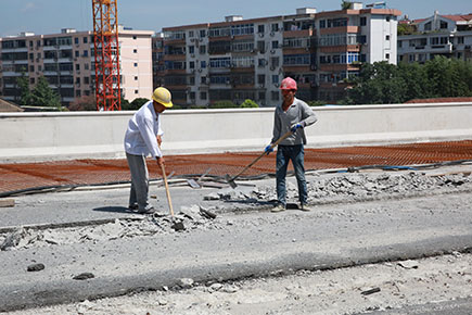 鐘志偉是8#立交項目部的現場管理人員。“目前正在施工的是8#立交主線橋的橋面鋪裝層,這個班組是月初進場,按照預計工期,月底前必須完成所有橋面鋪裝?!辩娭緜フf,時間緊、任務重,三伏天也要連軸轉。